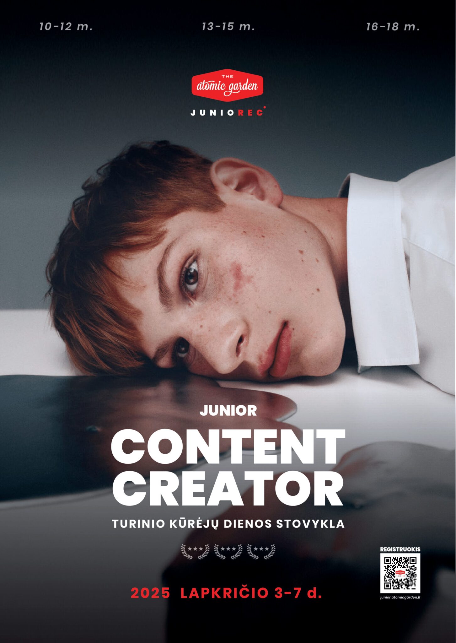 Lapkričio 3-7 dienomis pirmąkart įvyks vaikams ir paaugliams skirta 5 dienų trukmės turinio kūrėjų stovykla „The Atomic Garden Junior“! Jos tikslas – suburti 10-18 m. amžiaus jaunuolius bei padėti jiems atrasti savo virtualų identitetą, kurti autentišką, tvarų ir vertingą turinį, o taip pat – atpažinti socialiniuose tinkluose tykančius pavojus ir išmokti nuo jų apsisaugoti.